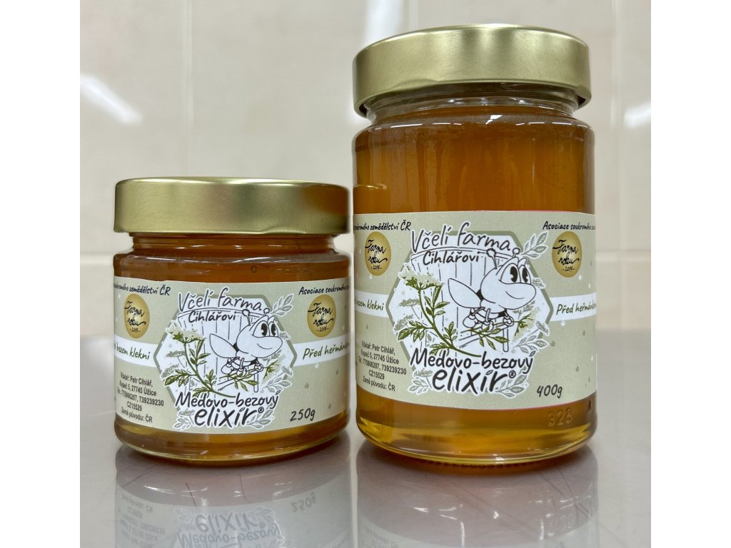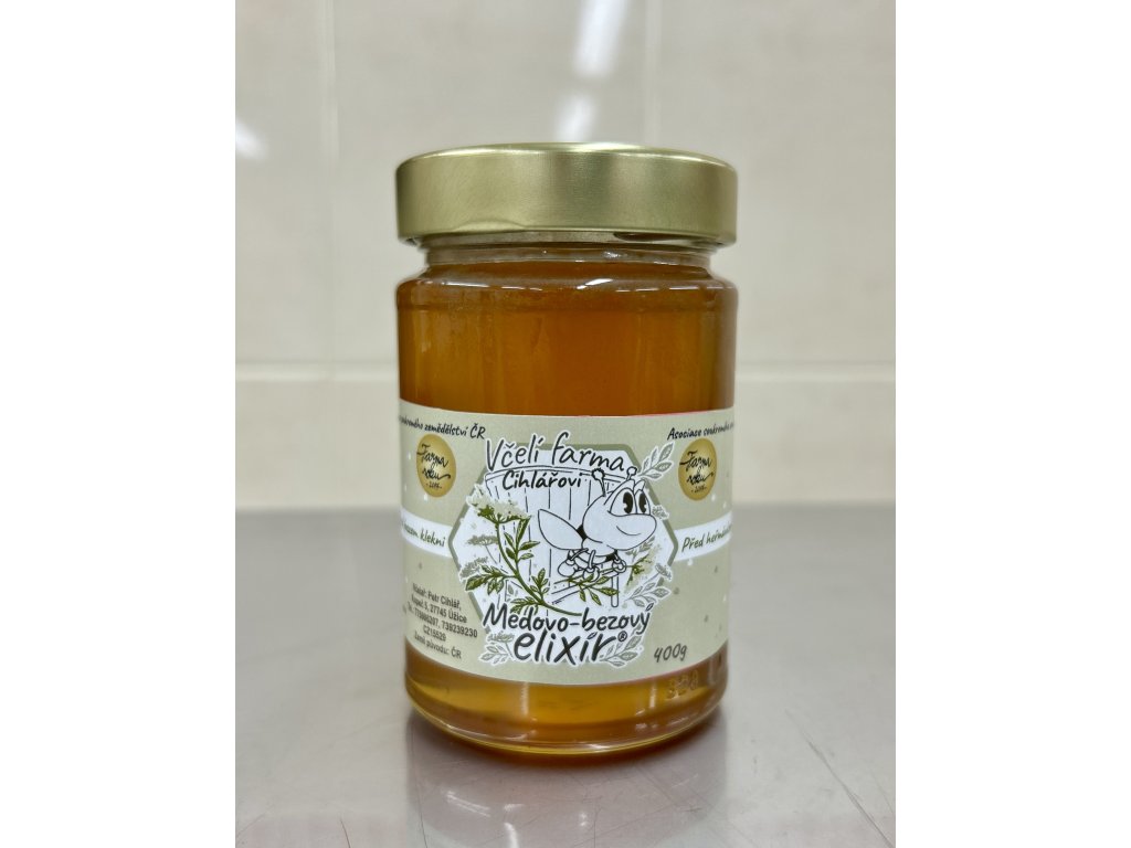 Medovo-bezový elixír je poctivý květový med, ve kterém jsme macerovali květy černého bezu – voňavé, léčivé a plné letní energie.